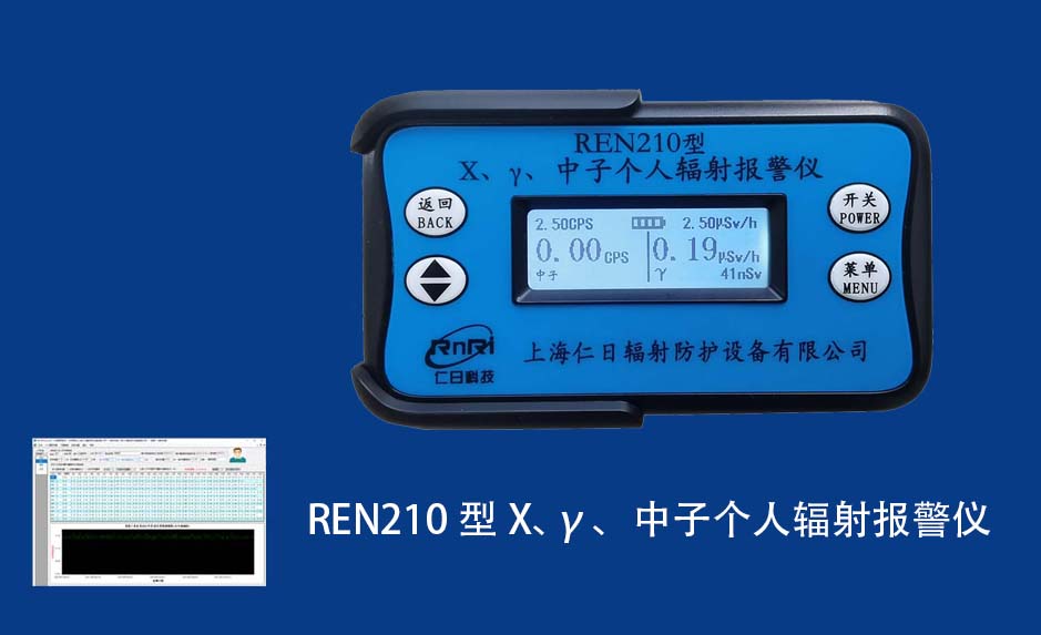 REN210 個人計量報警儀REN210型X、γ、中子個人輻射報警儀內(nèi)置SiPM和鋰玻璃晶體組成中子探測器儀器,采用反照率方式探測中子射線,同時也能探測X、γ射線。因此它可同事監(jiān)檢測X、γ、中子三種射線。能顯示工作場所的劑量當量率和累積劑量,更換電池時,日期及累積數(shù)據(jù)能永久保存。可選配RenRiPersonal個人劑量管理軟件,該軟件可存儲多個人的歷史數(shù)據(jù),能記錄日累積、月累積、年累積、輻照時長、計算平均劑量率、扣除或不扣除本底輻射,且以文字和圖譜的方式展現(xiàn)數(shù)據(jù)。廣泛應用于環(huán)保、化工、水泥、煤礦、土木工程、石油、醫(yī)院、疾控、進出口商檢、核電、加速器、機場、中子源庫和其他安檢、邊境控制海關(guān)檢測等領(lǐng)域中的工作人員進行個人安全防護監(jiān)測及放射性提示。